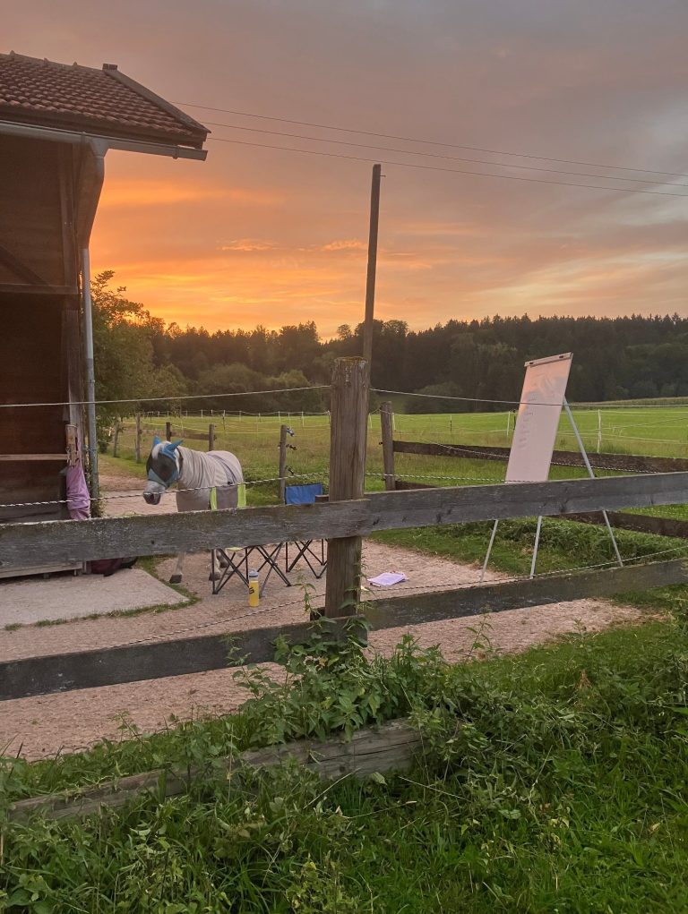 Danach machen wir eine Übung im Feld der Pferde, die dich in deiner aktuellen individuellen Situation stärken soll. Zum Schluss reflektieren wir deine Erfahrung mit den Pferden.